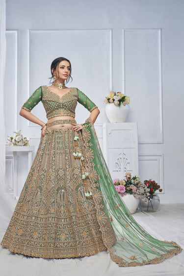 Gorgeous Net Green Wedding Lehenga Choli