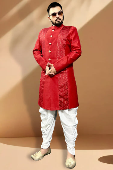 Gorgeous Silk Fabric Reception Wear Readymade Peshawari Style Indo Western For Men