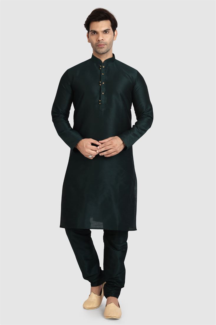 Gorgeous Teal Color Art Silk Fabric Readymade Kurta Pyjama For Men