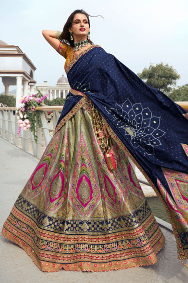 Gorgeous Wedding Wear Multi Color Bridal Lehenga In Silk Fabric