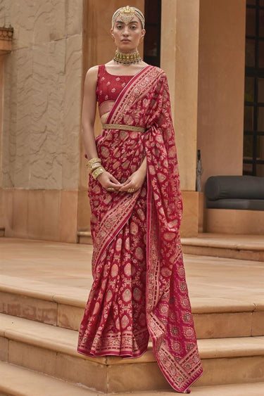 Graceful Brasso Fabric Red Color Saree With Printed Work