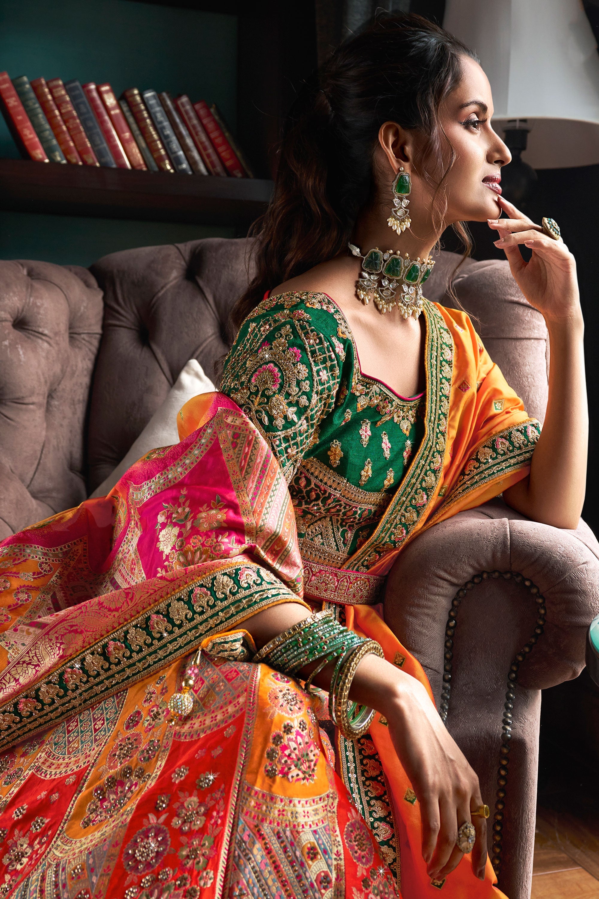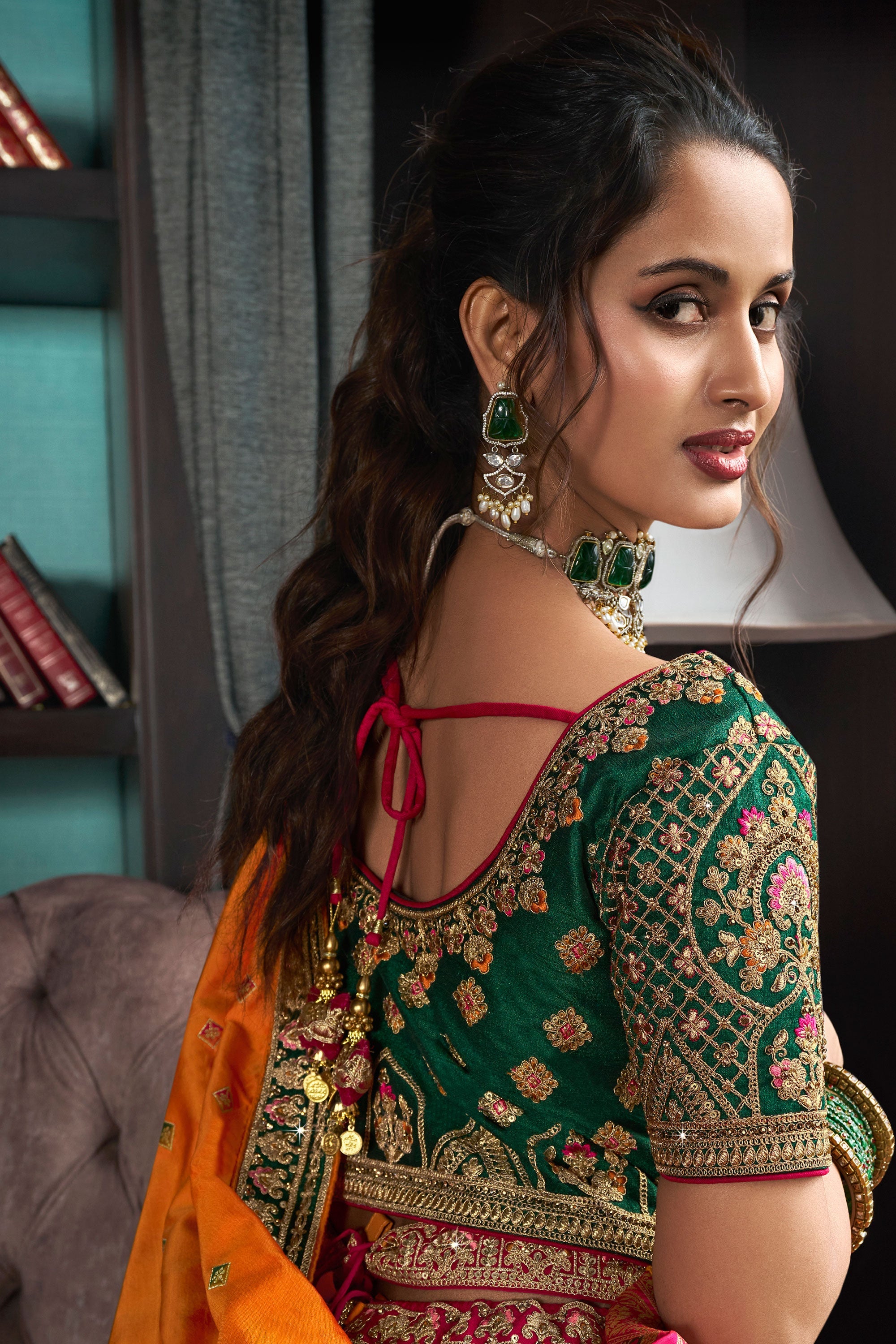 Graceful Heavy Embroidered Bridal Lehenga Choli In Banarasi Silk Fabric