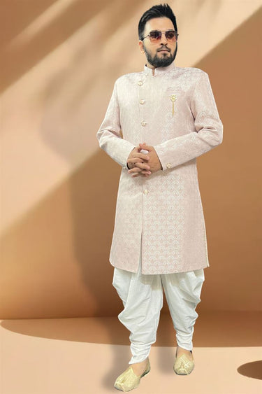 Graceful Pink Color Jacquard Fabric Peshawari Style Indo Western Set