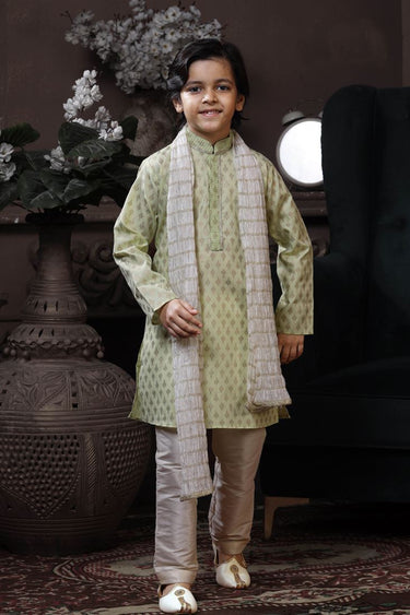 Graceful Sea Green Color Cotton Fabric Printed Sangeet Wear Readymade Boys Kurta Pyjama