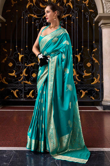 Graceful Sea Green Color Satin Silk Saree with Weaving Designs