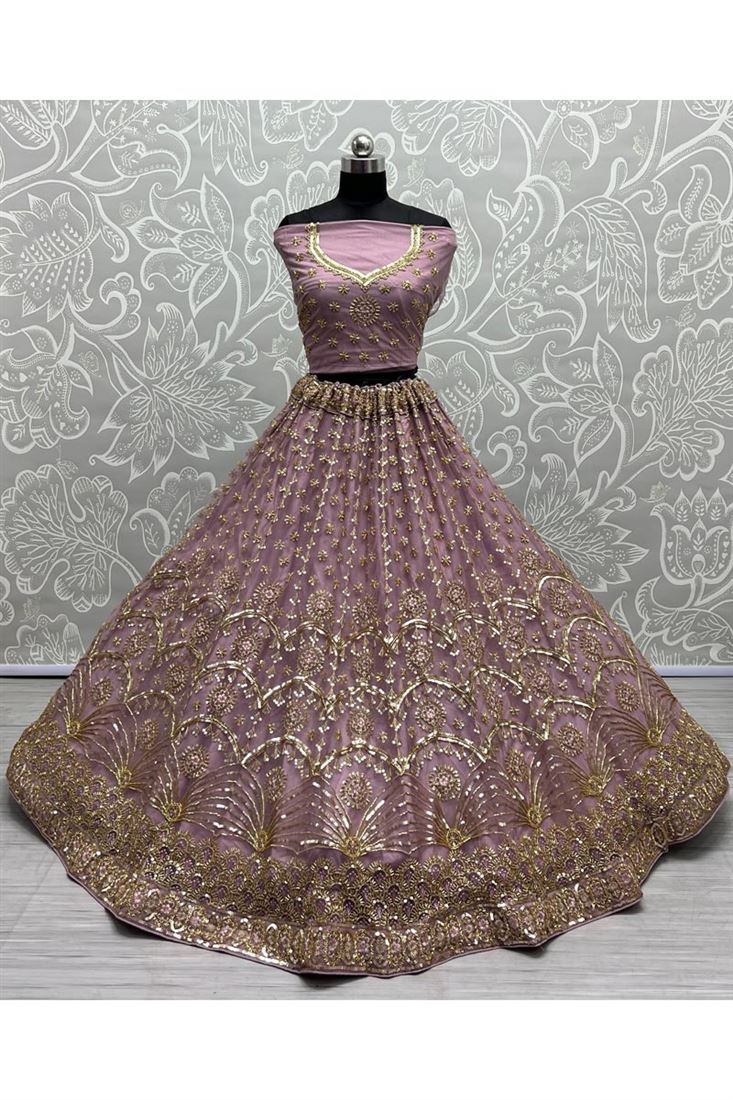 Graceful Sequins Work Lavender Net Bridal Lehenga