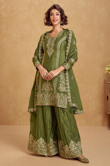 Green Chinon Silk Designer Readymade Palazzo Dress