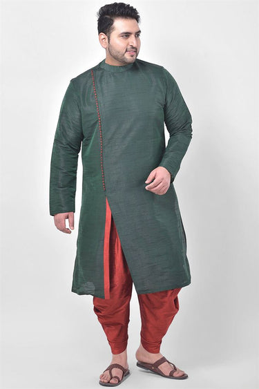 Green Color Function Wear Plus Size Kurta With Dhoti Style Pyjama In Dhupion Silk Fabric