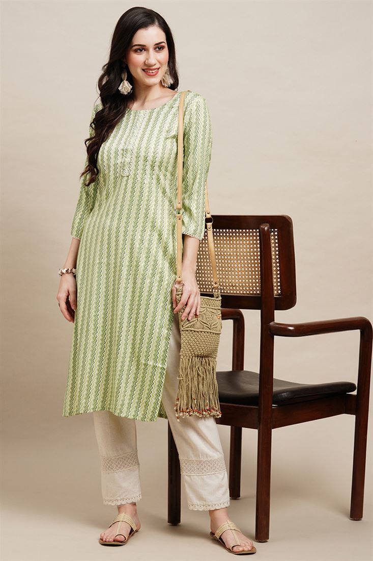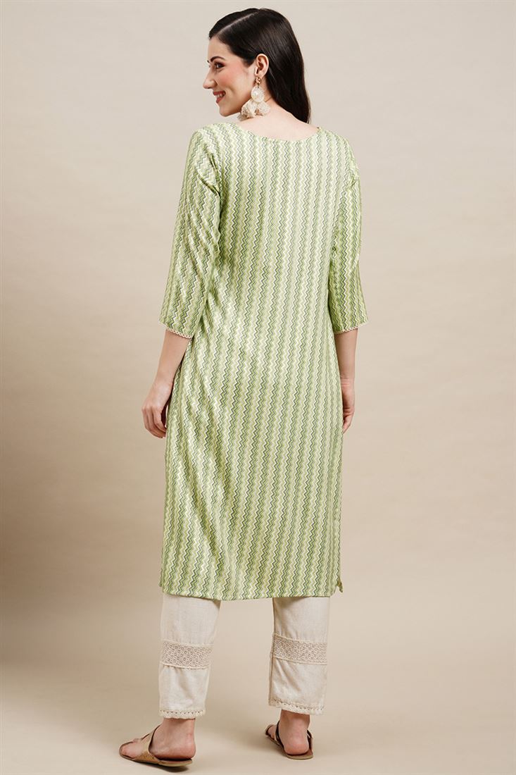 Green Color Rayon Readymade Kurti With Printed Designs