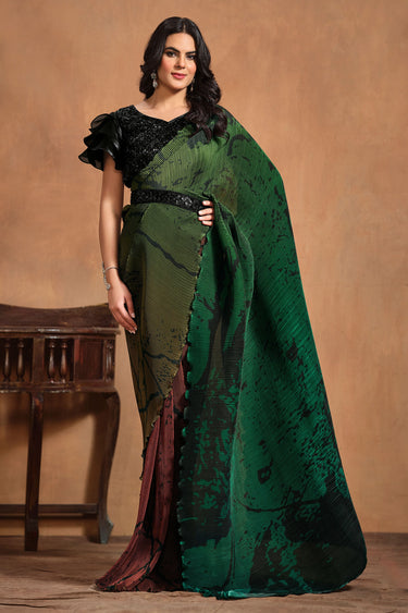 Green Ombre Digital Printed Satin Silk Ready To Wear Saree