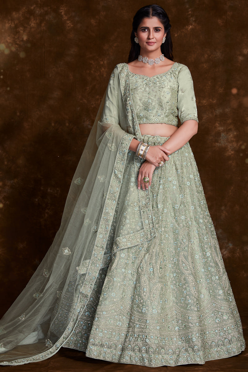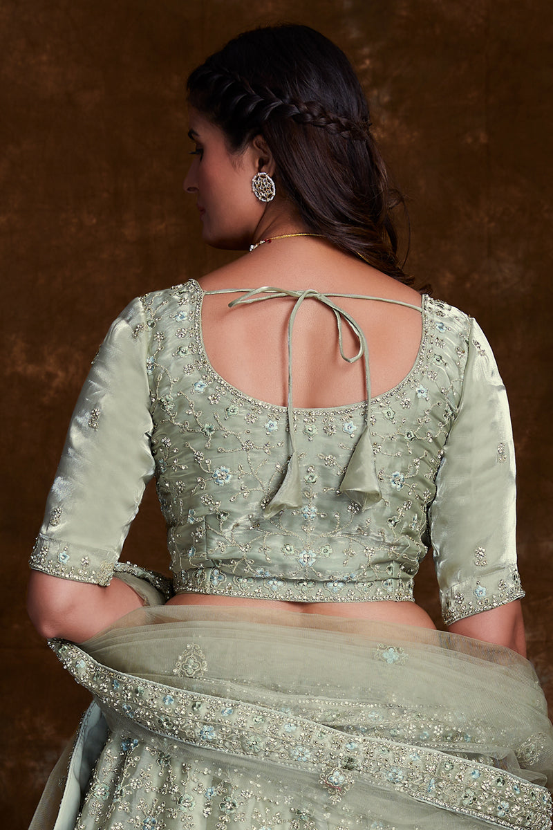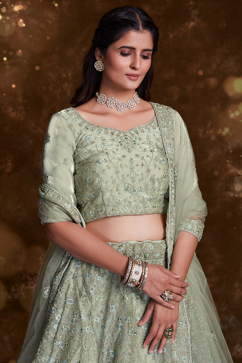 Green Organza Reception Wear Lehenga Choli With Embroidery Work