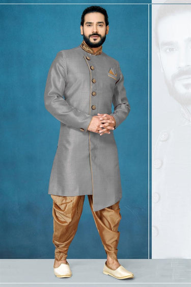Grey Color Art Silk Fabric Function Wear Pleasant Dhoti Style Indo Western