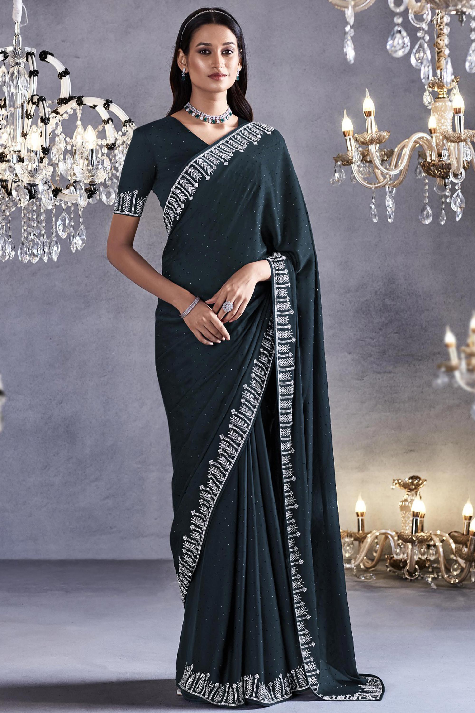 Grey Color Art Silk Fabric Zarkan Work Saree With Same Color Blouse
