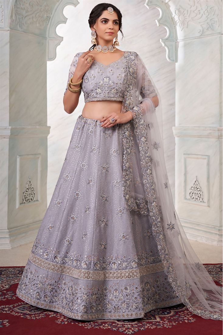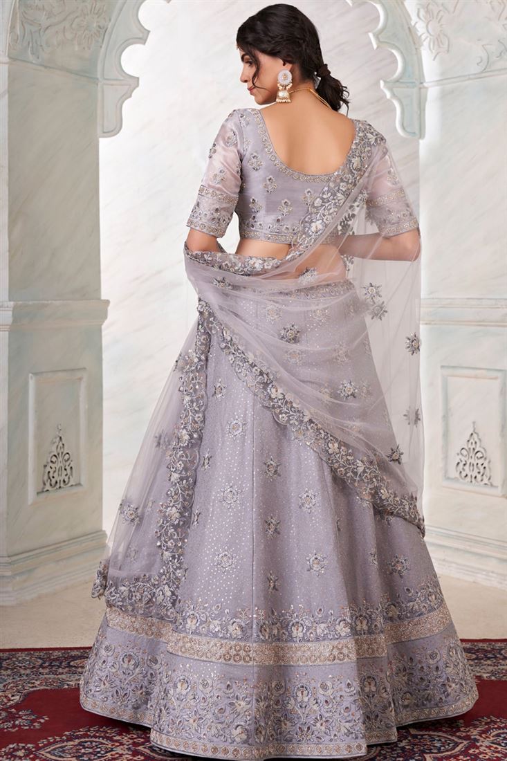 Grey Color Bright Net Fabric Wedding Wear Lehenga Choli