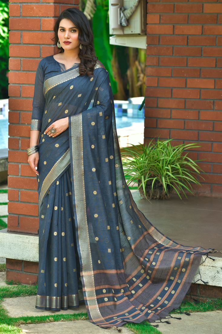 Grey Color Charismatic Casual Wear Weaving Work Cotton Saree