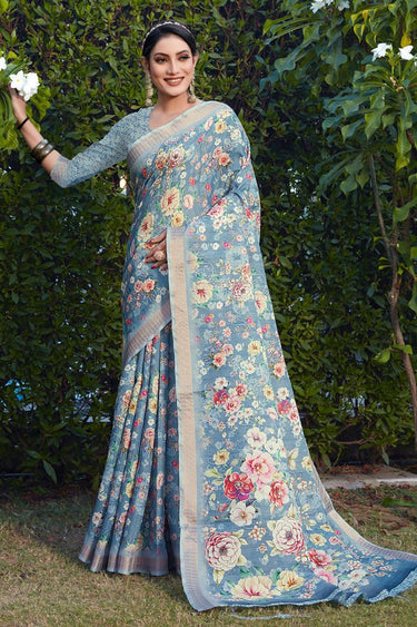 Grey Color Cotton Silk Fabric Beatific Festive Style Saree