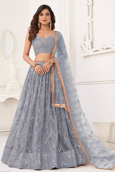 Grey Color Function Wear Sequins Work Luminous Lehenga In Net Fabric