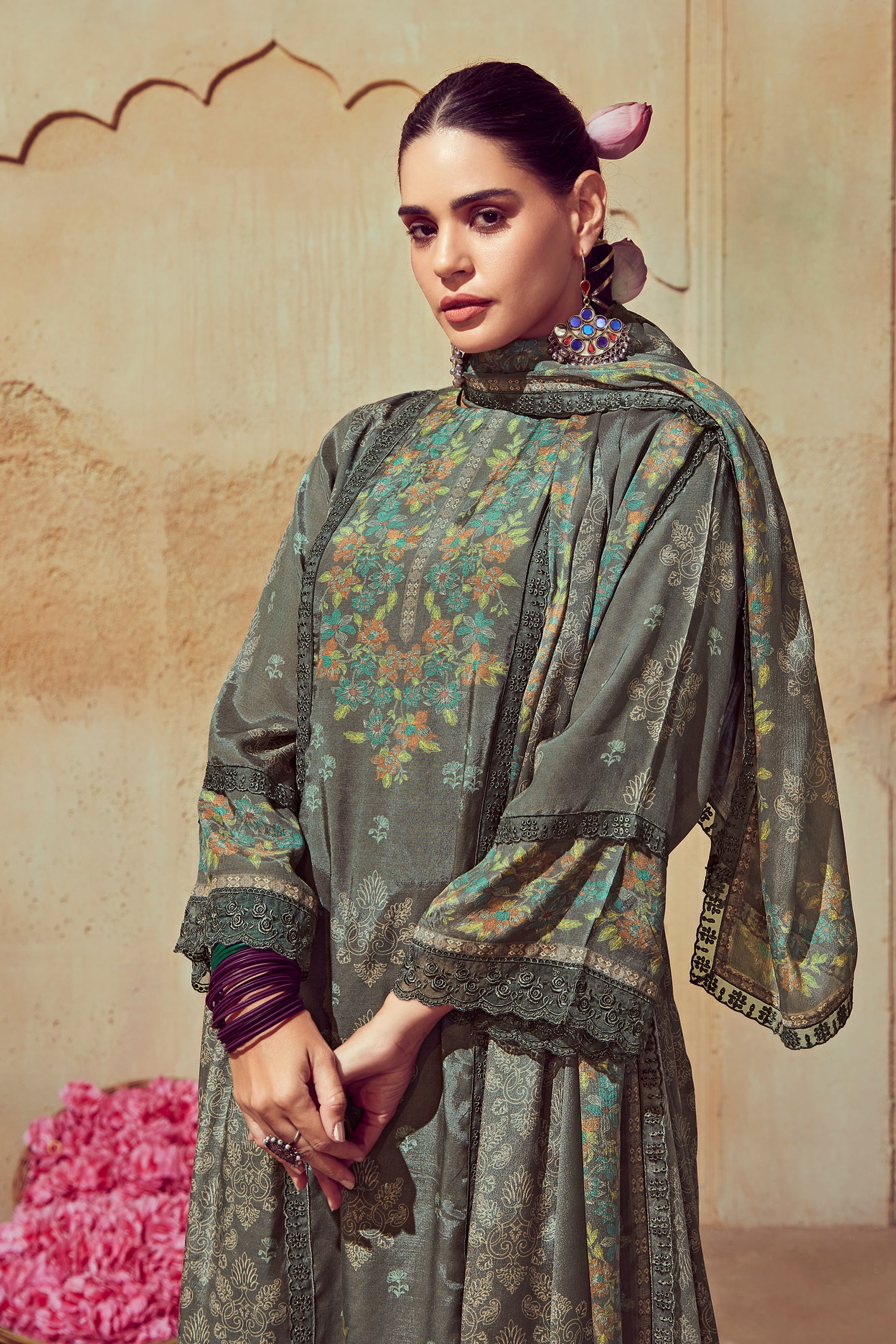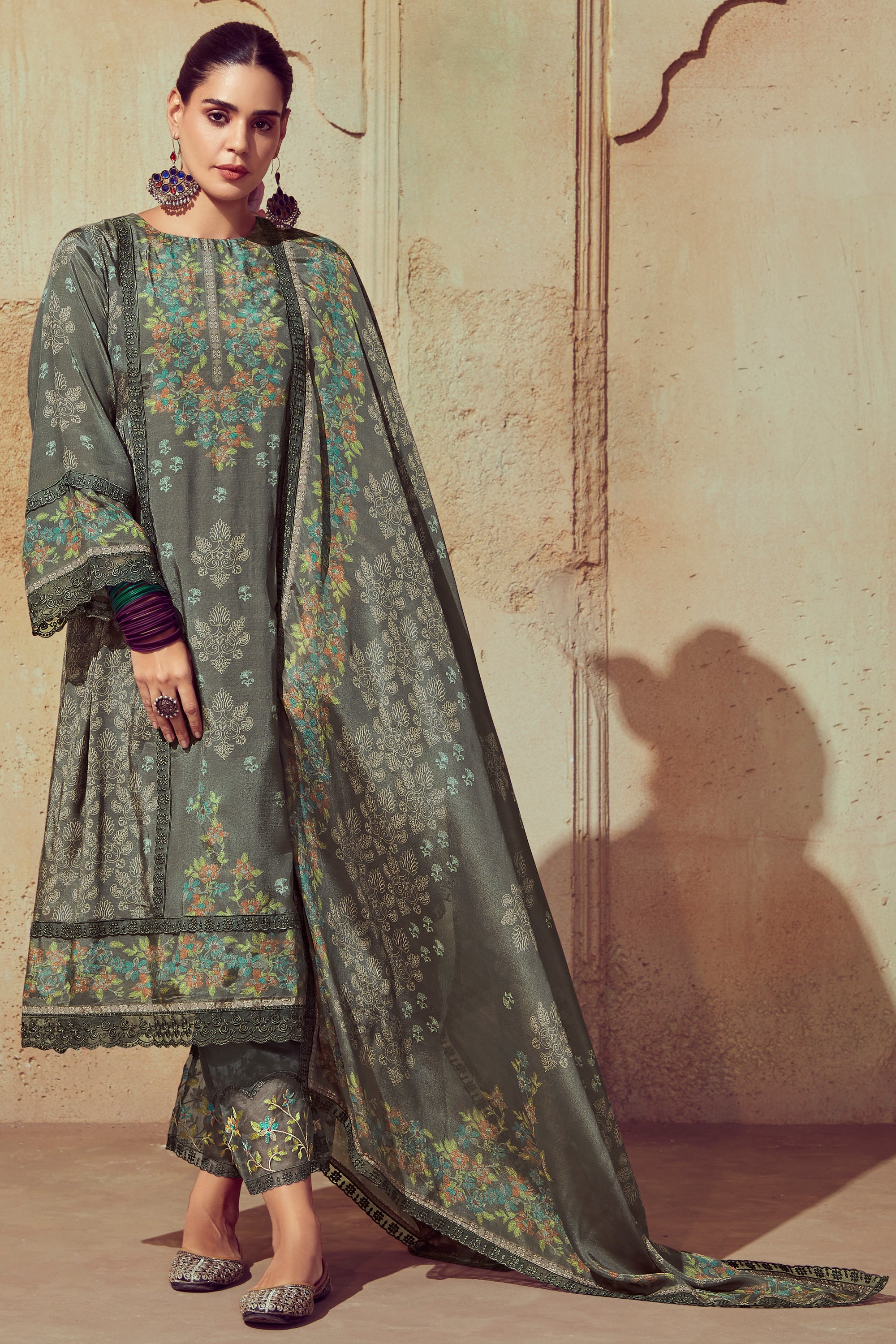 Grey Color Muslin Fabric Elegant Festive Look Salwar Suit