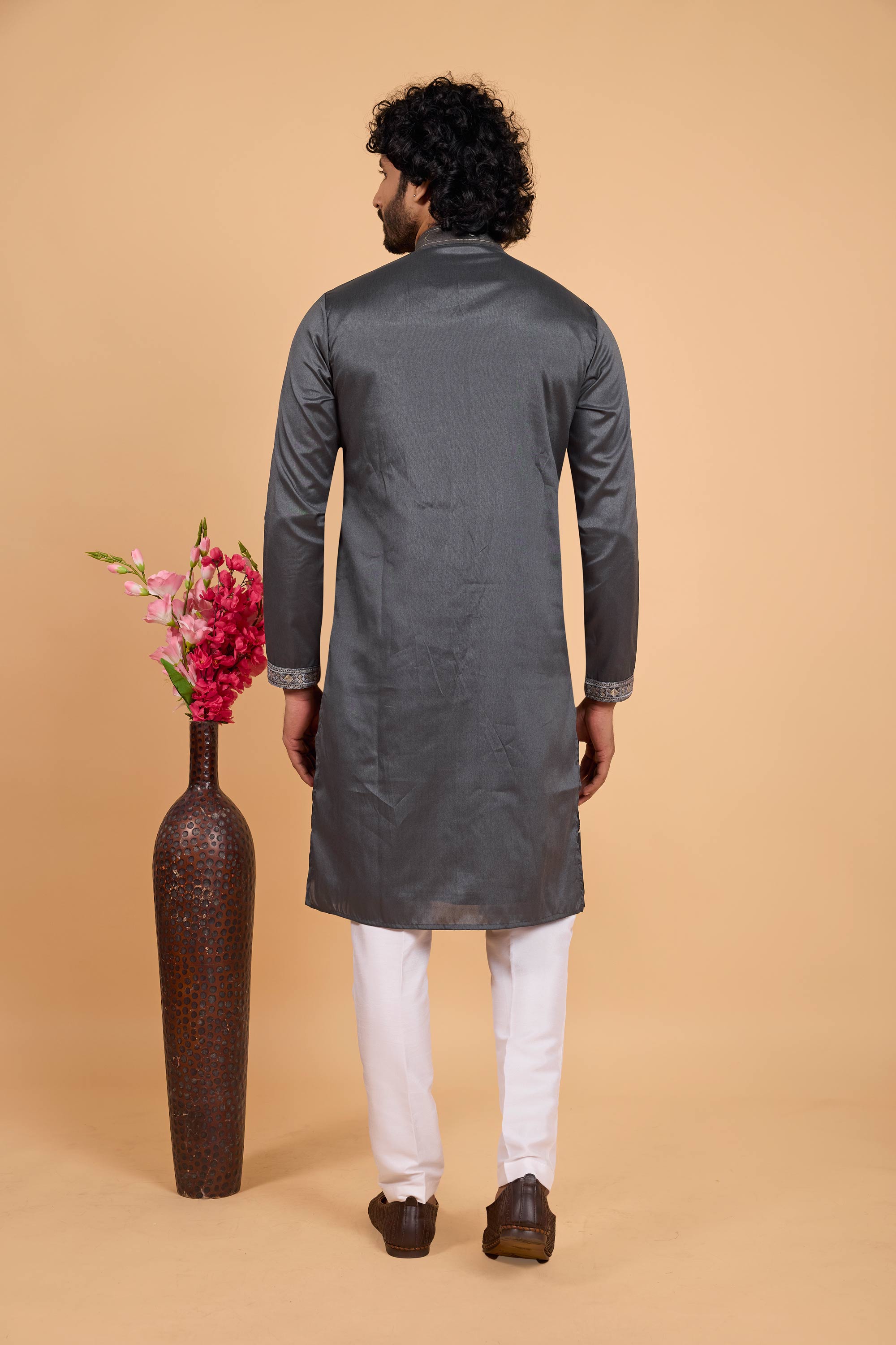 Grey Festive Wear Art Silk Fabric Kurta Pyjama For Men