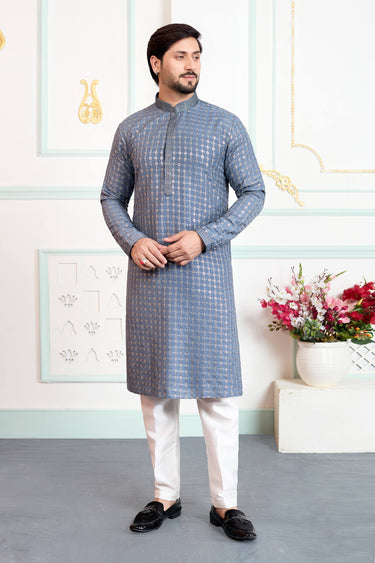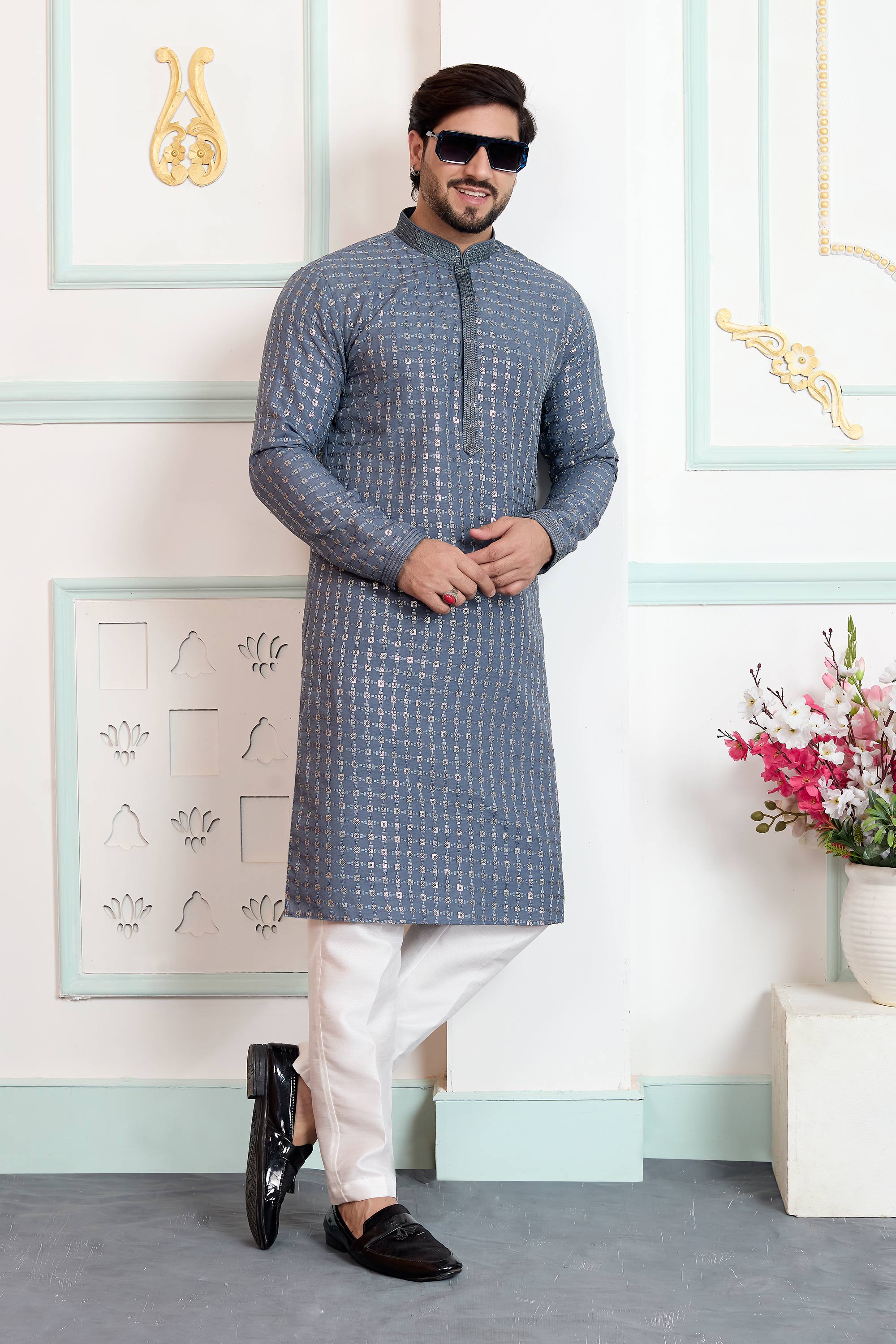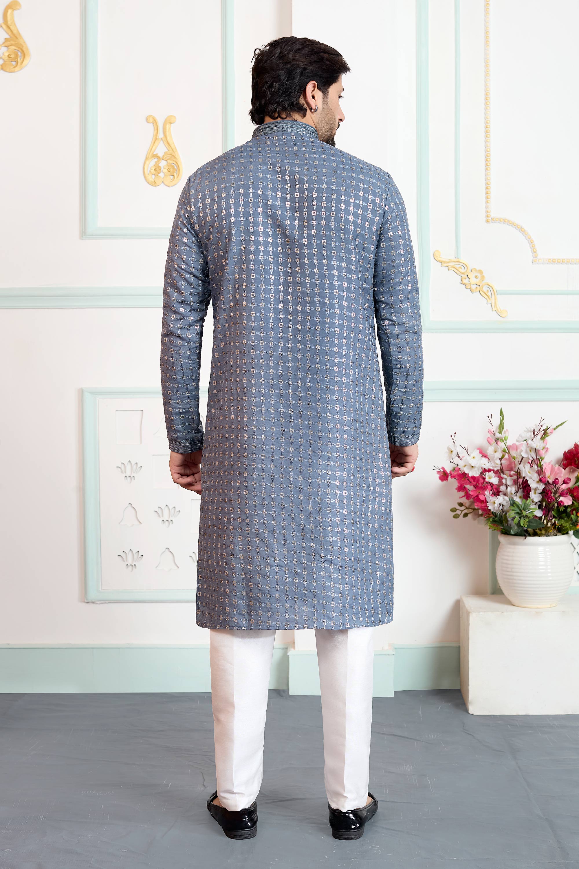 Grey Festive Wear Art Silk Readymade Kurta Pyjama For Men