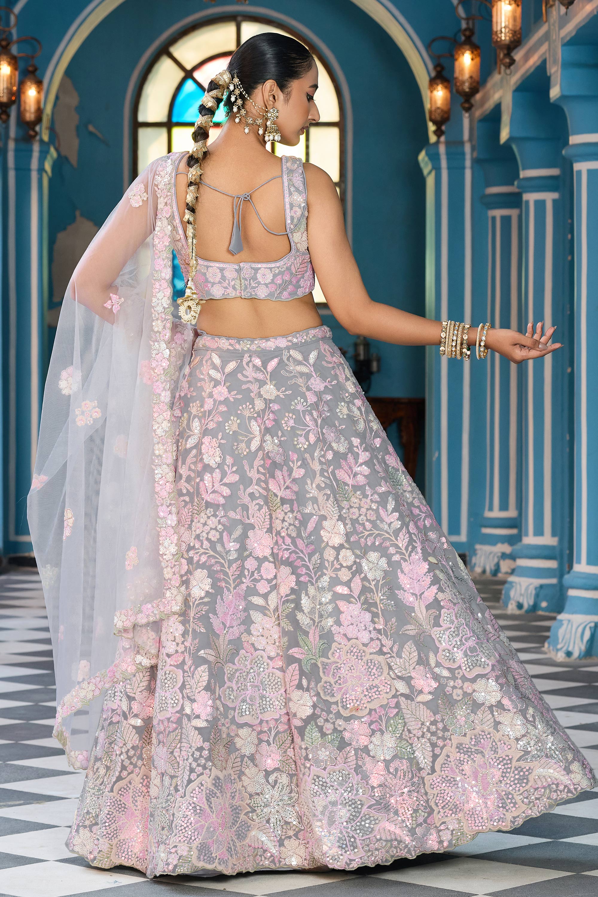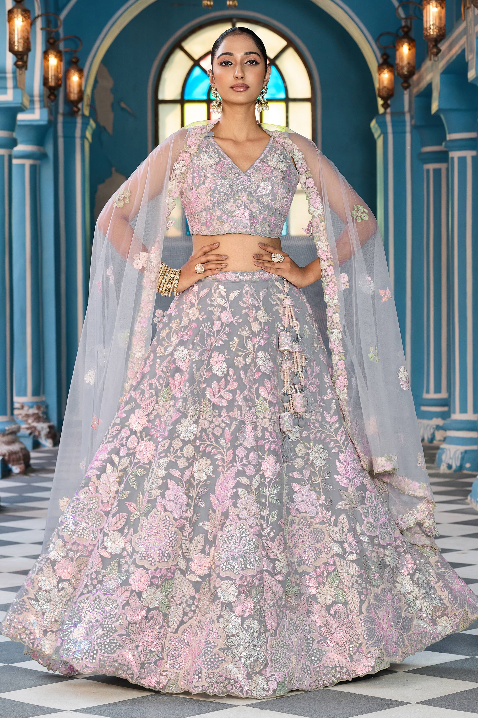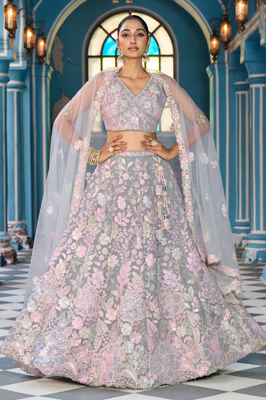 Grey Net Heavy Embroidered Wedding Wear Lehenga Choli
