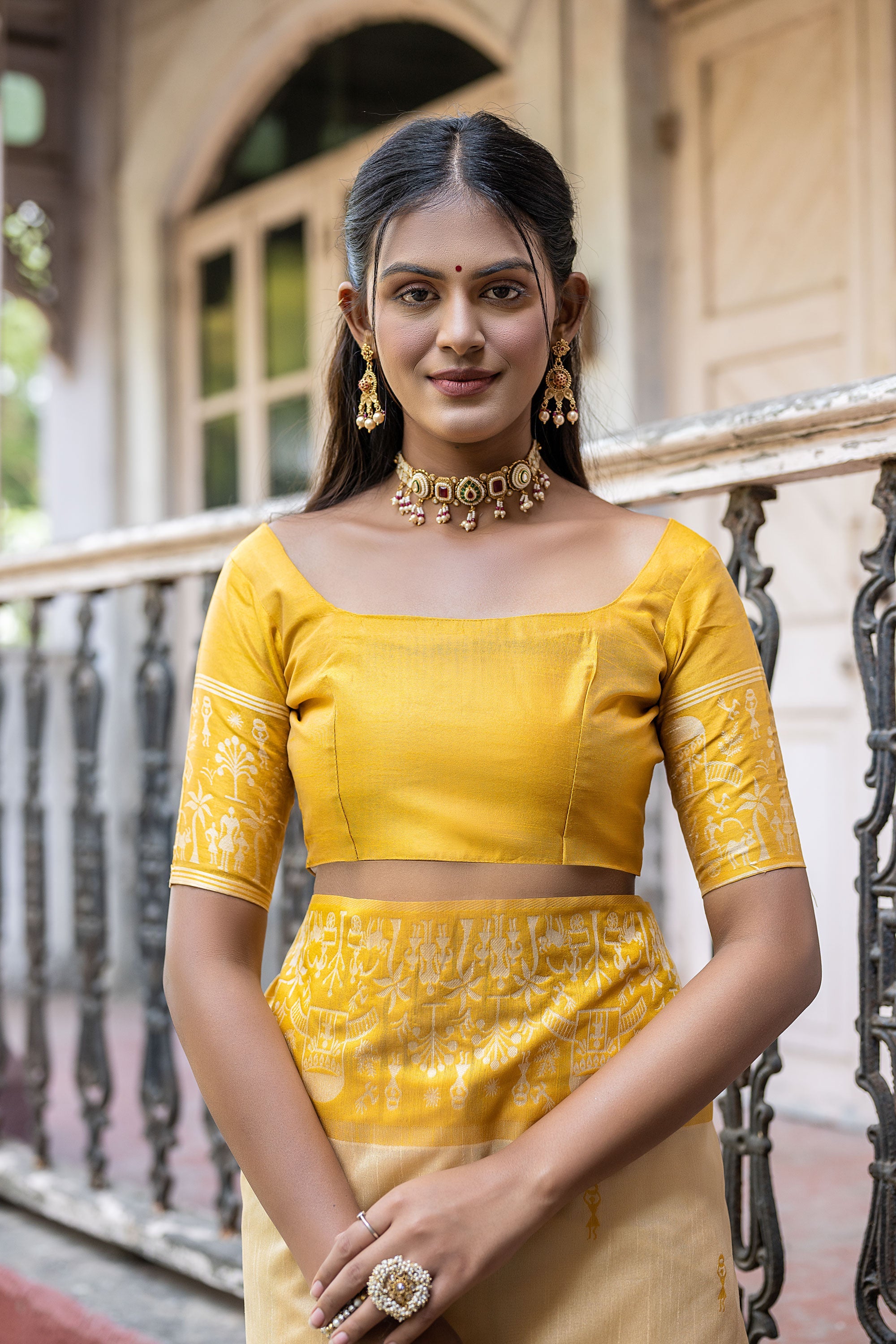 Hand-printed pieces are crafted with traditional techniques, which may result in slight imperfections—these add to their uniqueness and artisanal charm. Due to the natural dyeing and printing process, slight color bleeding may occur during the first wash. As these designs are not machine-printed, their raw, handcrafted essence enhances the beauty of your chosen outfit.