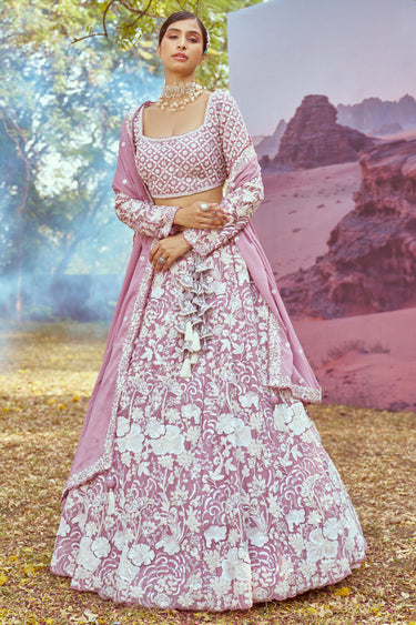 Heavy Embroidered Bridal Lehenga Choli In Lavender Color