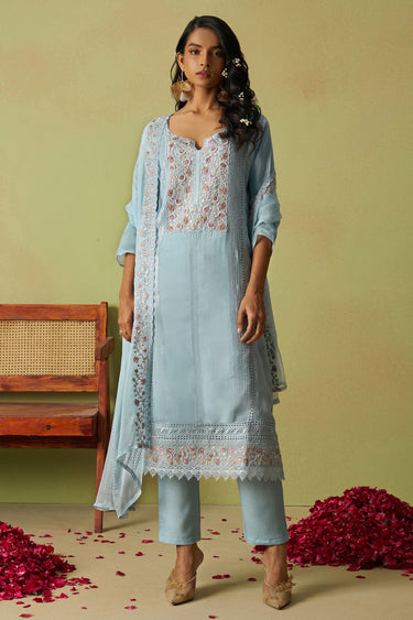 Heavy Embroidered Sky Blue Straight Cut Salwar Suit