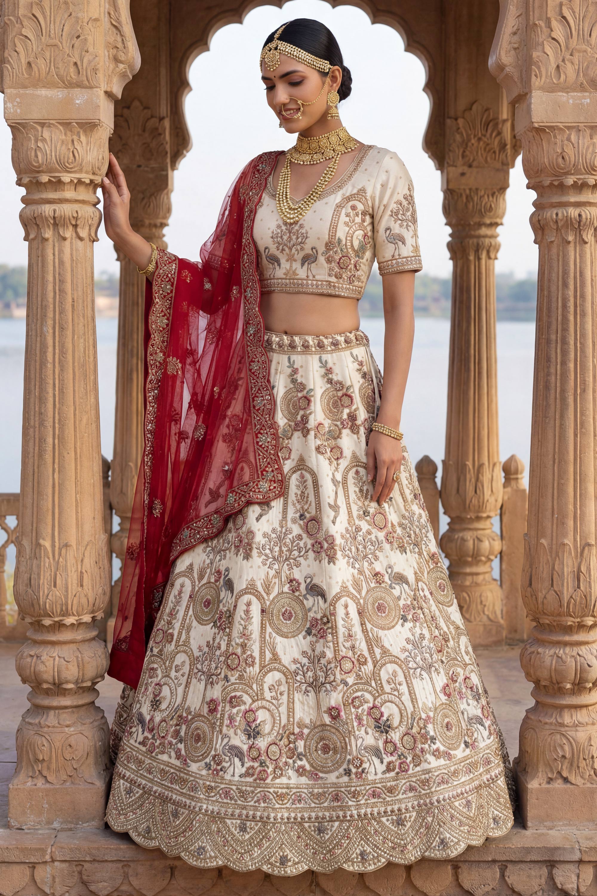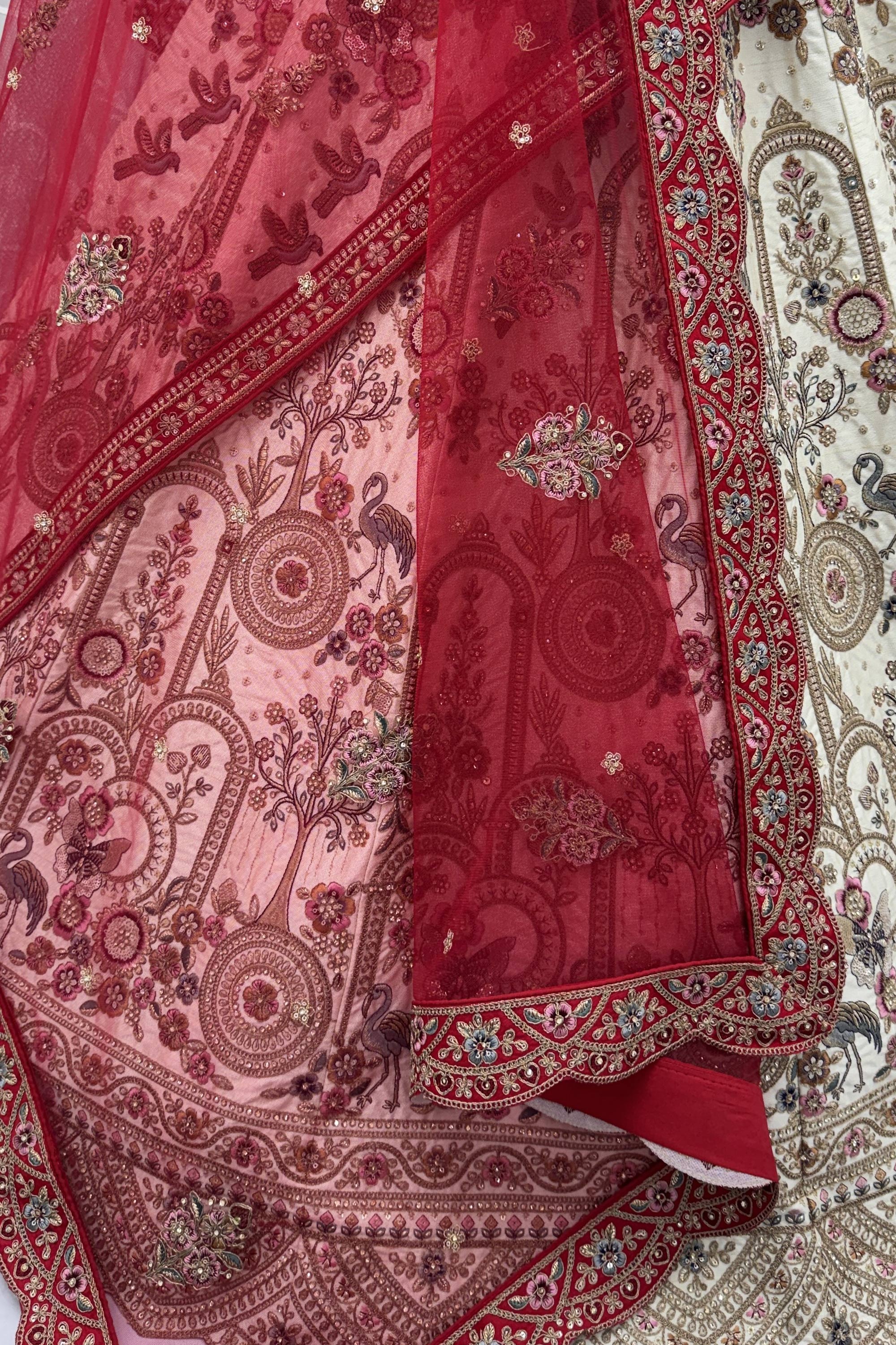 Heavy Embroidered White Silk Bridal Lehenga Choli