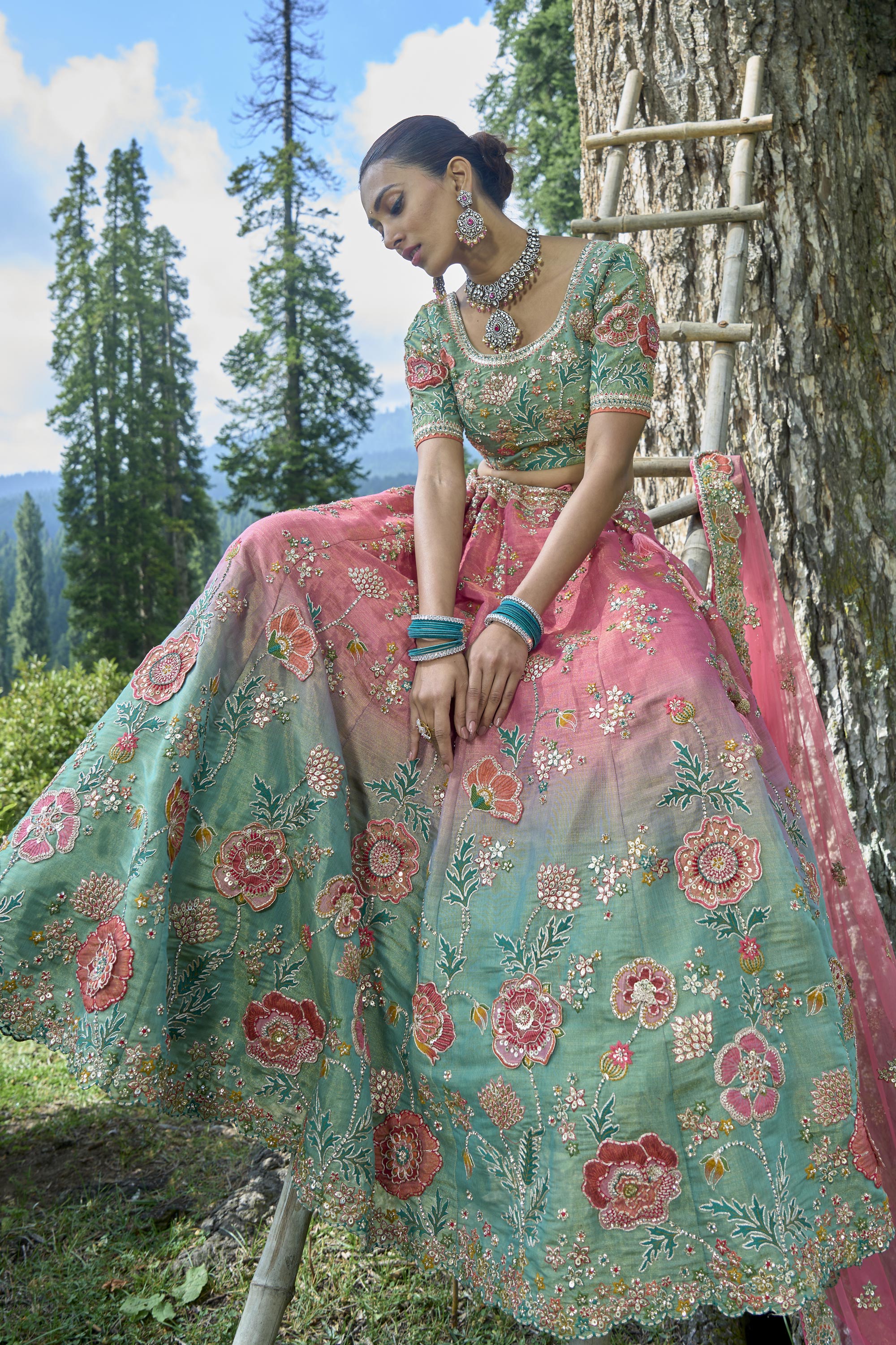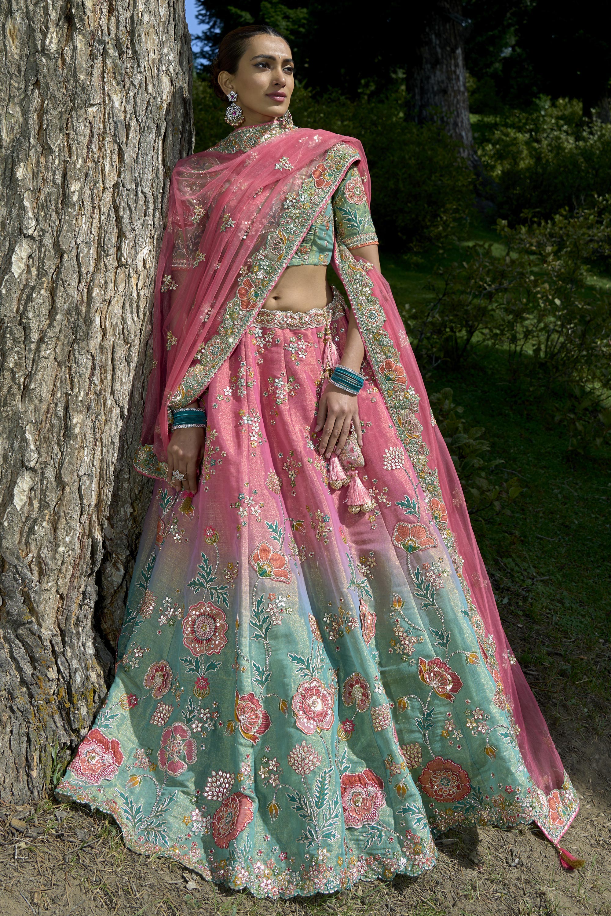 Heavy Embroidery Work Sea Green Color Viscose Fabric Bridal Lehenga Choli