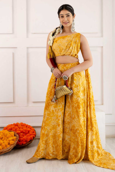 Heavy Viscose Fabric Yellow Color Indo Western palazzo Suit