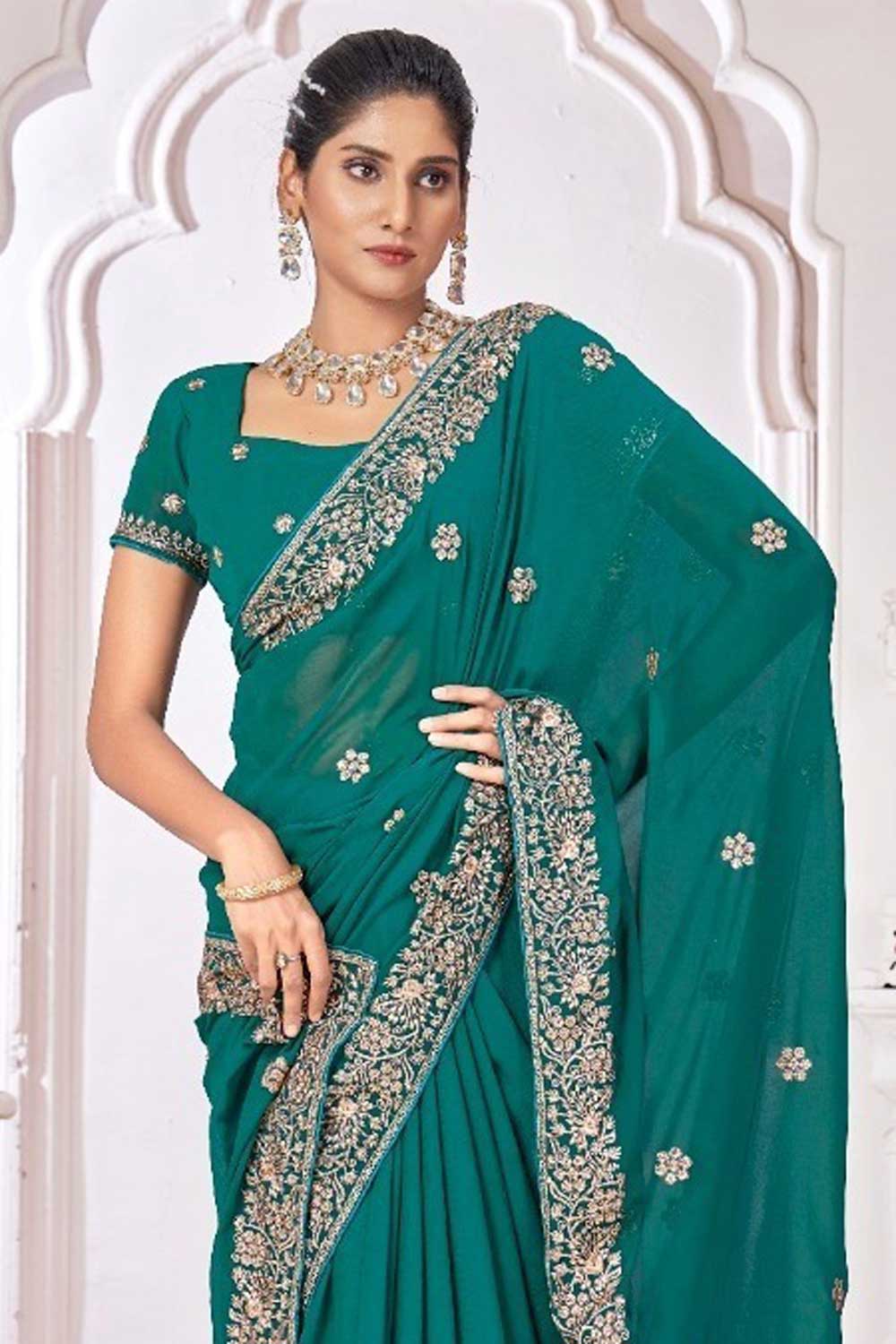 Embrace elegance with this stunning Georgette saree, designed to make every festival feel extraordinary. Crafted from lightweight Georgette fabric, the saree drapes effortlessly, offering a blend of comfort and style. The blouse, also in matching Georgette, complements the saree’s flowing texture, making it a harmonious ensemble. Delicate border work adds a refined charm, elevating the saree with a hint of traditional appeal. Ideal for festive occasions, it captures the essence of timeless beauty and modern grace.Please Note: Colors may vary slightly due to digital imaging. Accessories shown are for display purposes only.