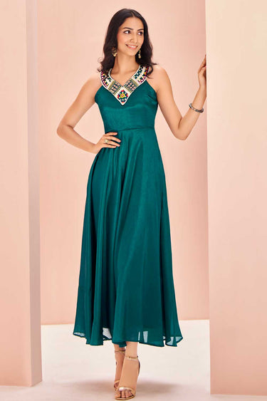 Incredible Chinon Fabric Teal Color Kurti