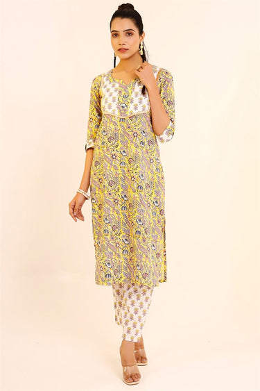 Incredible Cotton Fabric Yellow Color Printed Top Bottom Set