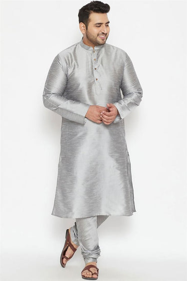 Incredible Dhupion Silk Fabric Grey Color Sangeet Wear Plus Size Kurta Pyjama