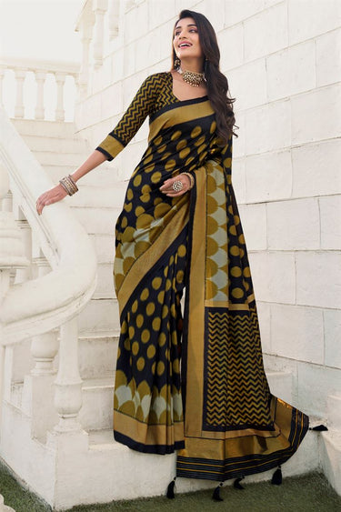 Incredible Digital Printed Black Color Patola Art Silk Saree