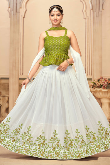 Incredible Embroidered Work On Georgette Fabric White Color Lehenga