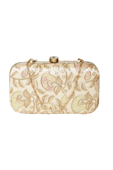 Incredible Fancy Fabric Cream Color Party Style Clutch Purses