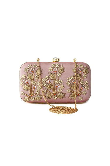 Incredible Fancy Fabric Embroidered Peach Clutch