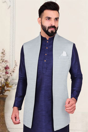 Incredible Function Style Brocade Fabric Grey Color Jacket