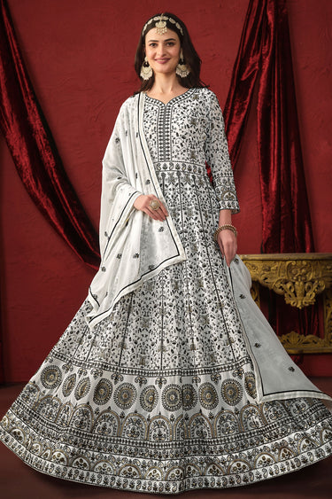 Incredible Georgette Fabric White Color Embroidered Anarkali Suit