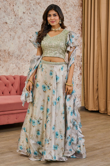 Incredible Sequins Work On Tissue Fabric Beige Color Readymade Lehenga