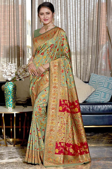 Incredible Weaving Work Pallu On Art Silk Fabric Sea Green Color Festival Wear Banarasi Style Saree