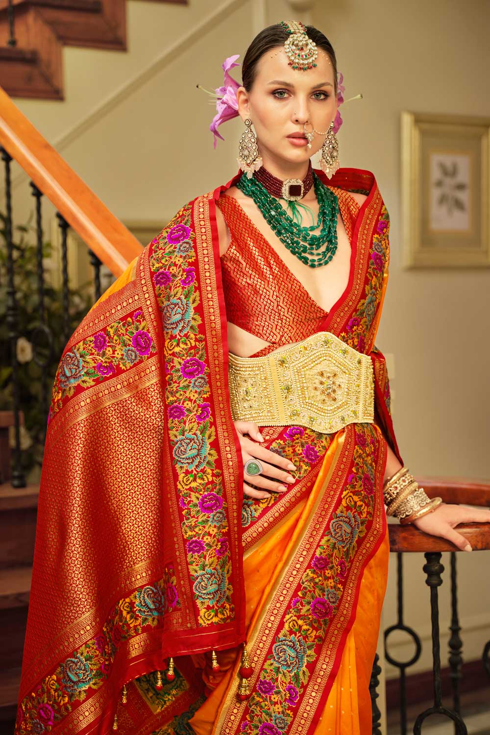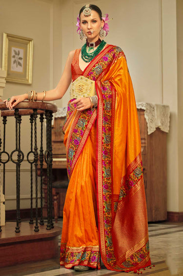 Jacquard Elegance On Orange Color Banarasi Silk Saree