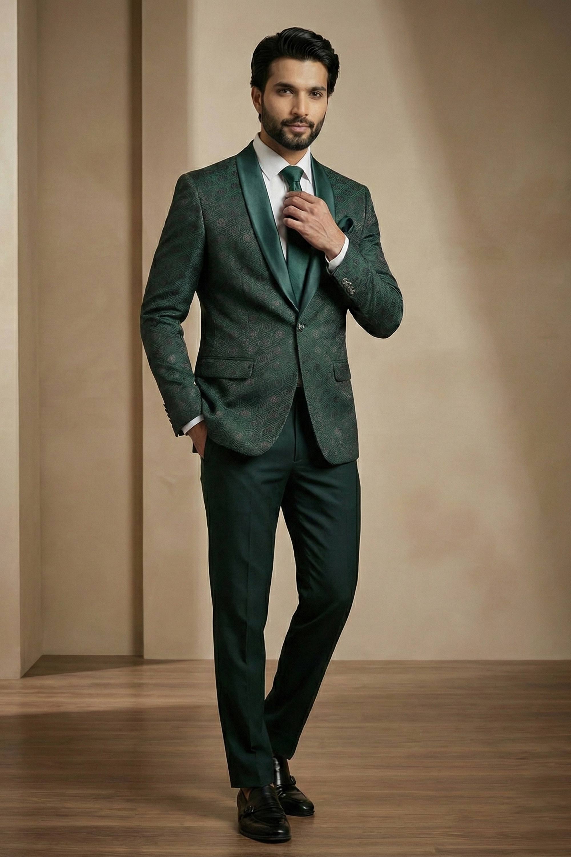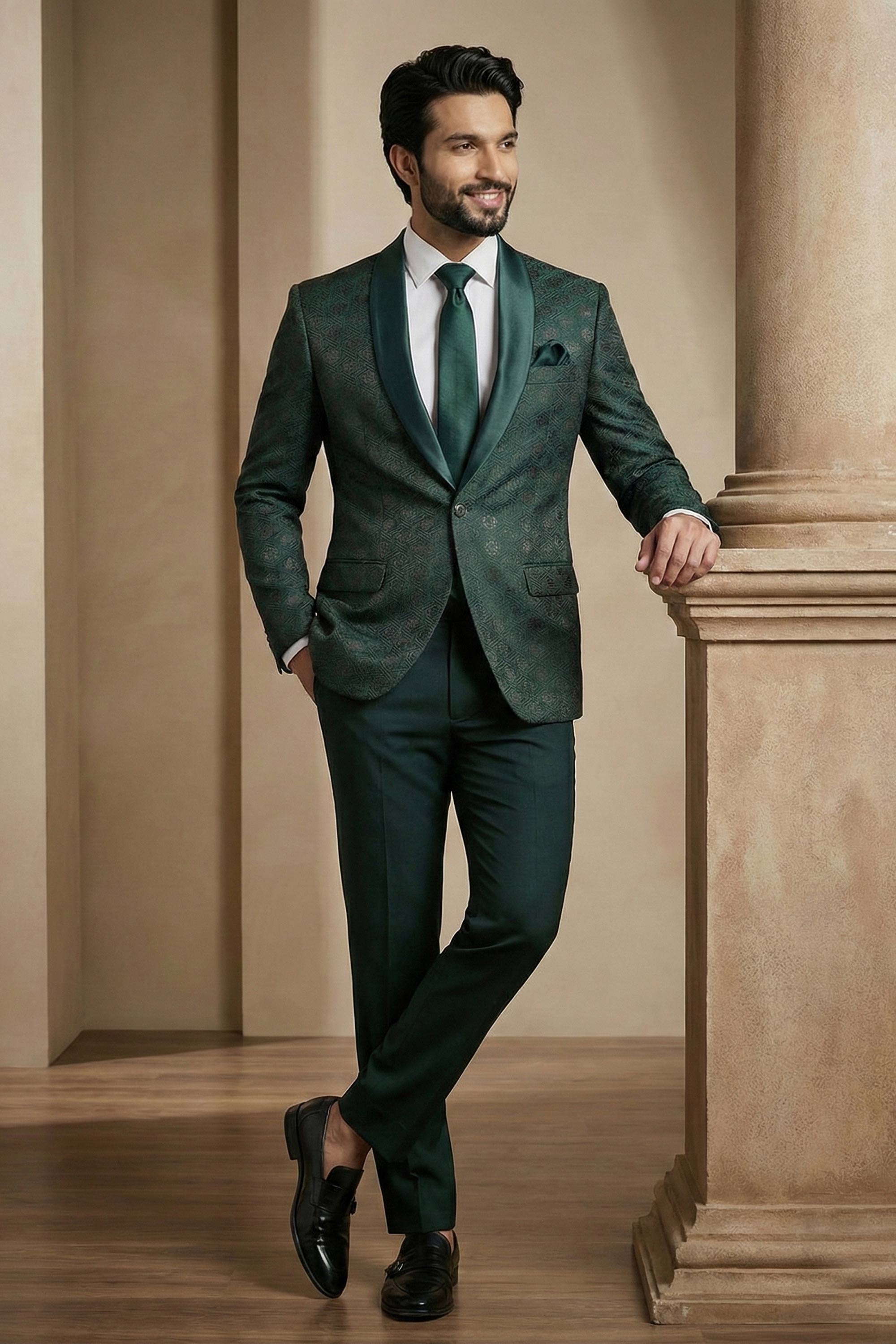 Jacquard Fabric Dark Green Men Readymade Blazer For Party Wear