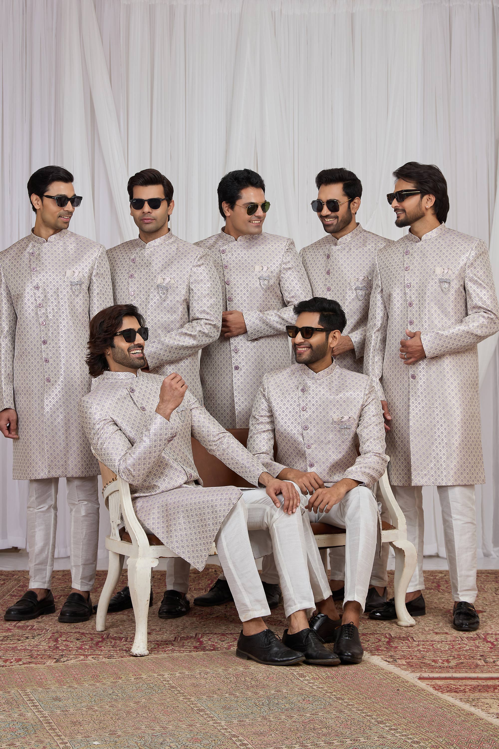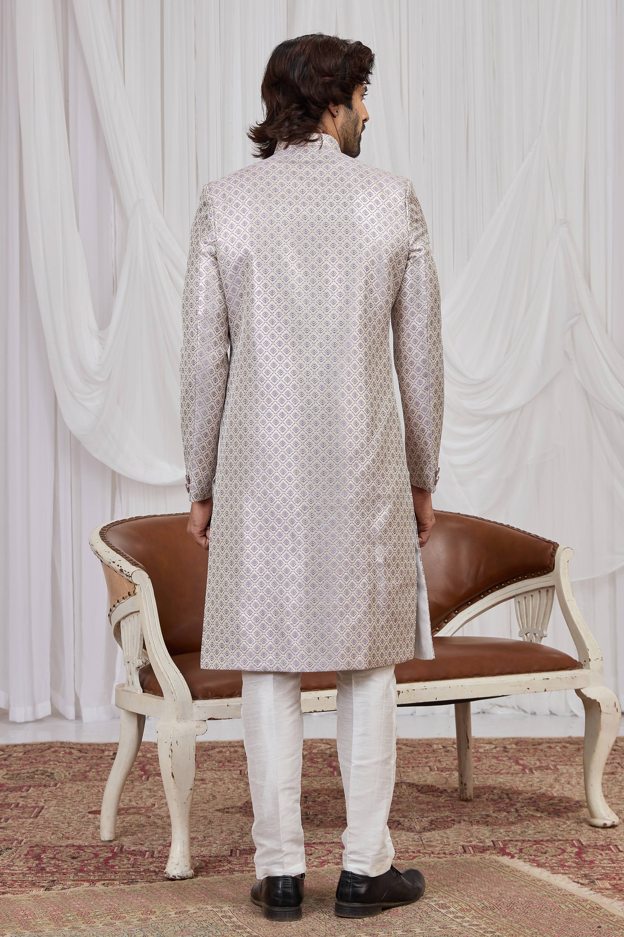 Jacquard Fabric Lavender Readymade Indo Western For Men