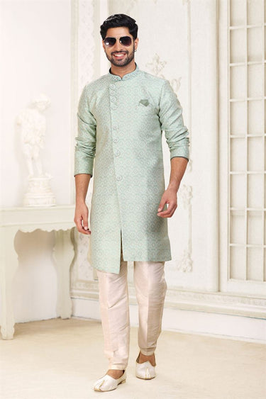 Jacquard Fabric Light Cyan Color Readymade Men Stylish Indo Western