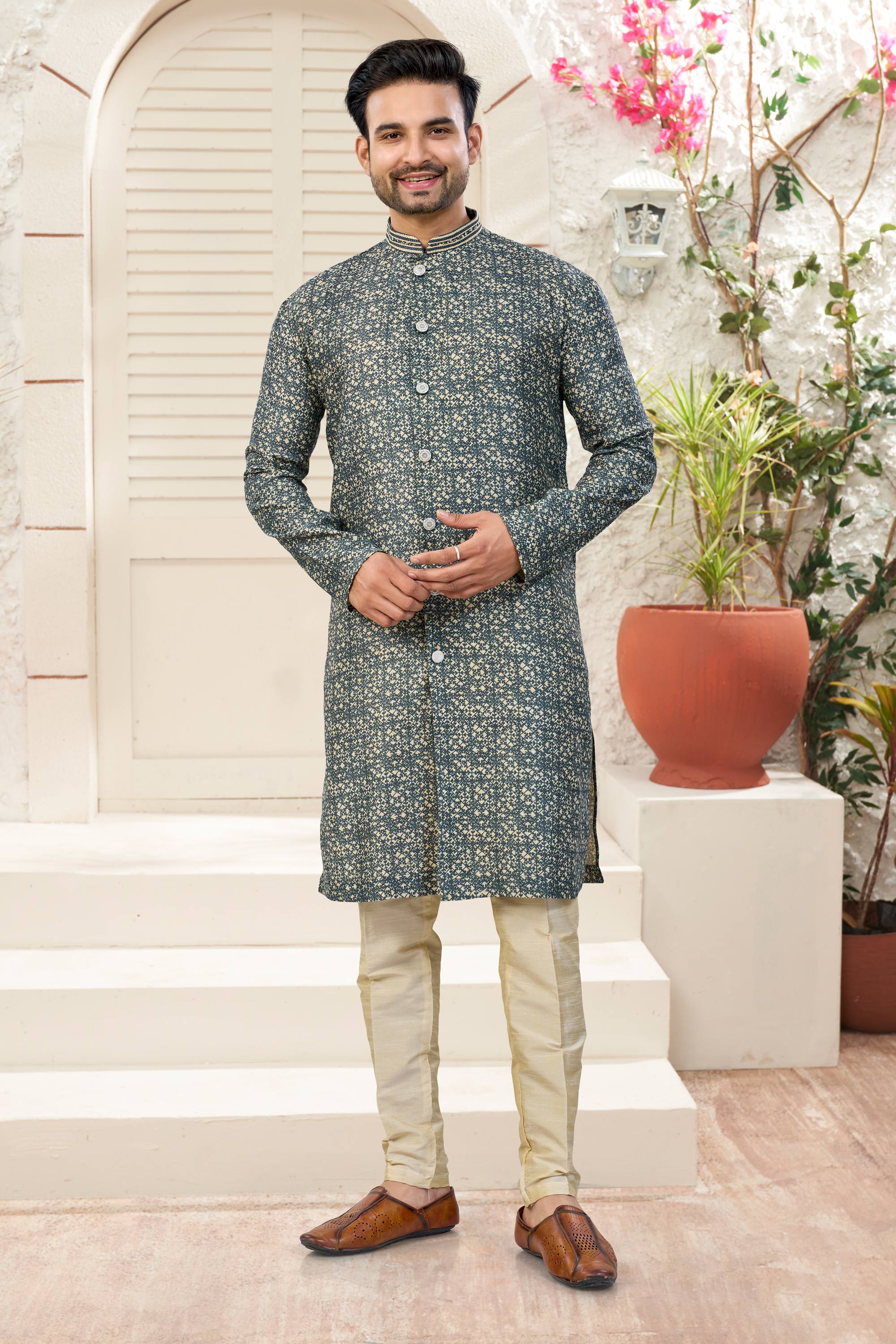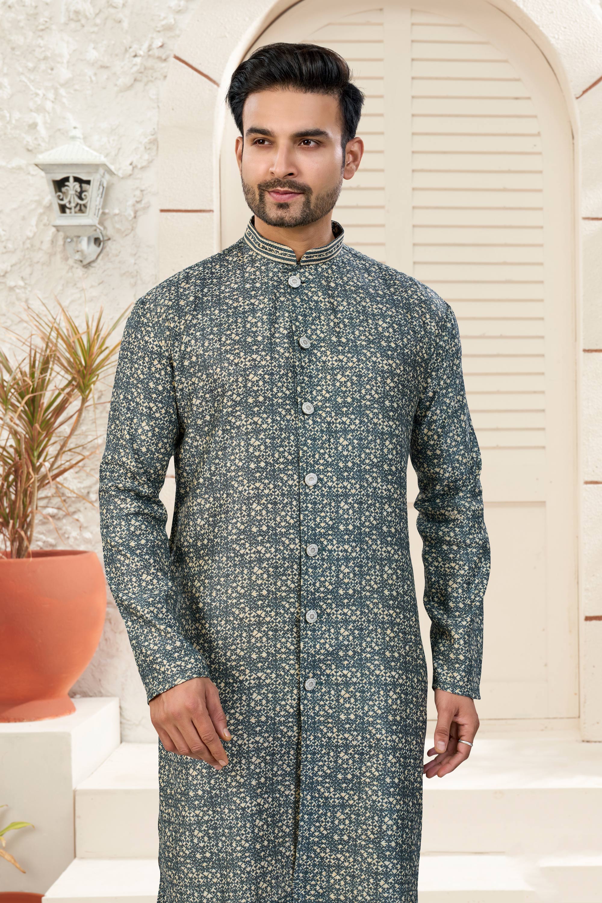 Jacquard Fabric Multi Color Wedding Wear Readymade Indo Western For Men