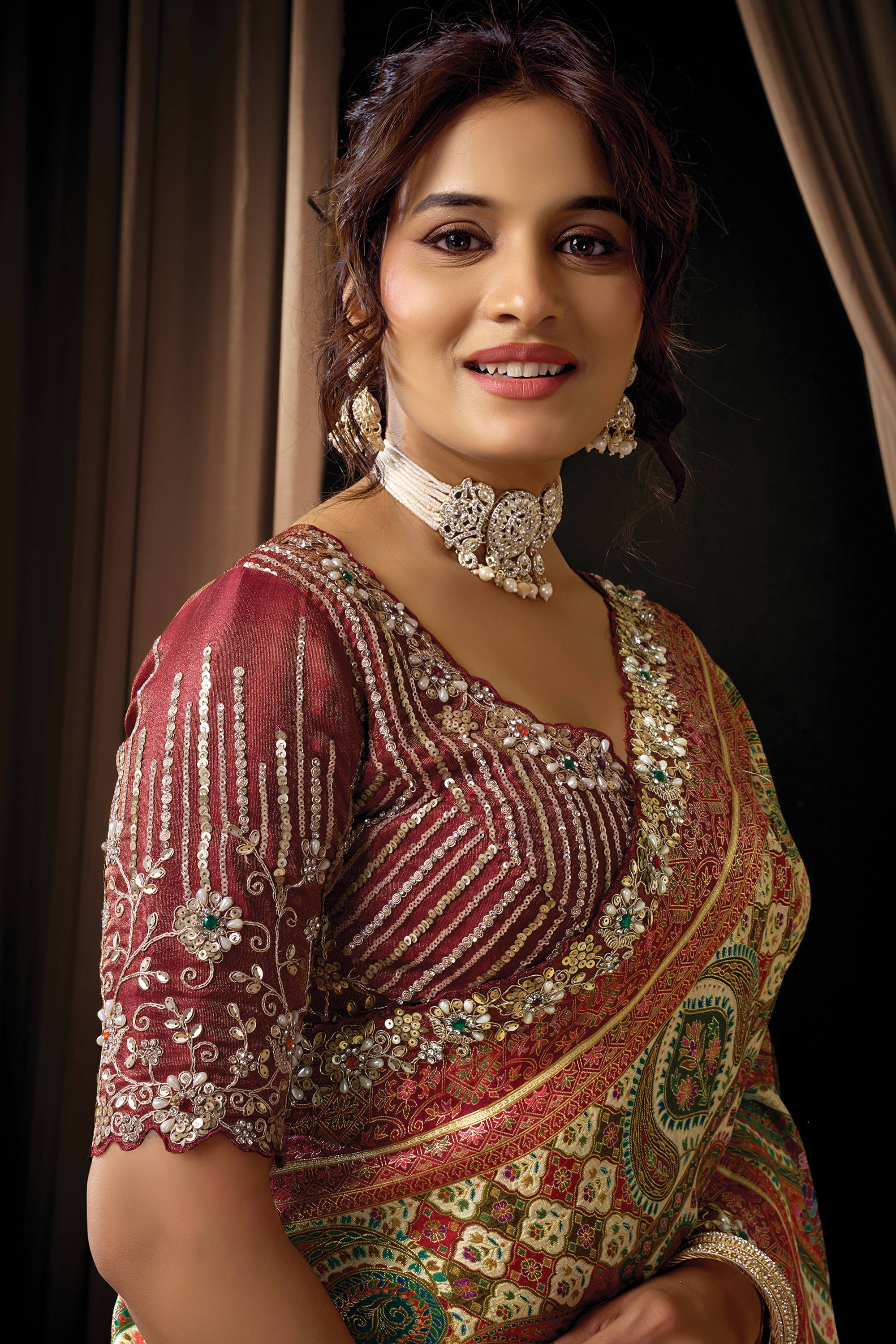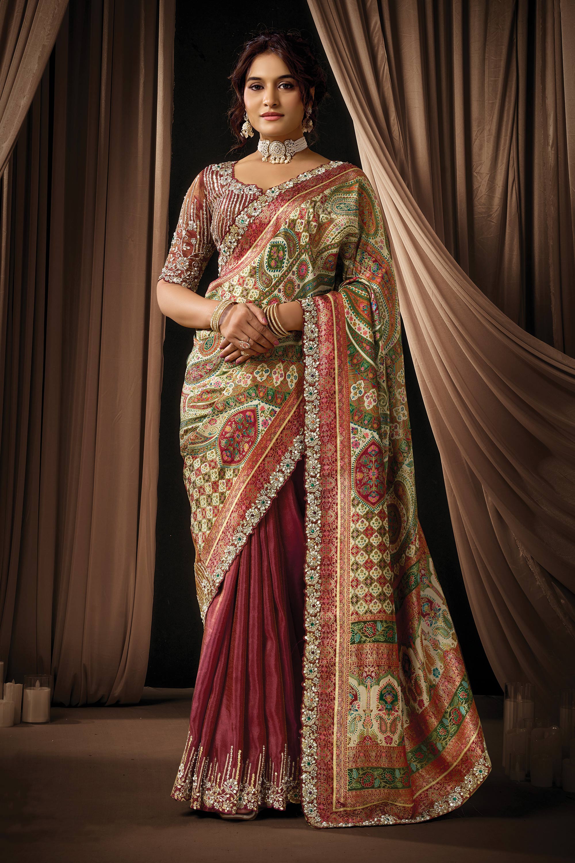 Celebrate in style with this elegant Designer Saree designed with fine embroidery work that enhances its traditional beauty. Ideal for functions and festive moments, the reach color adds sophistication to the look. It comes with a matching blouse piece, and slight color variations may occur due to digital photography.