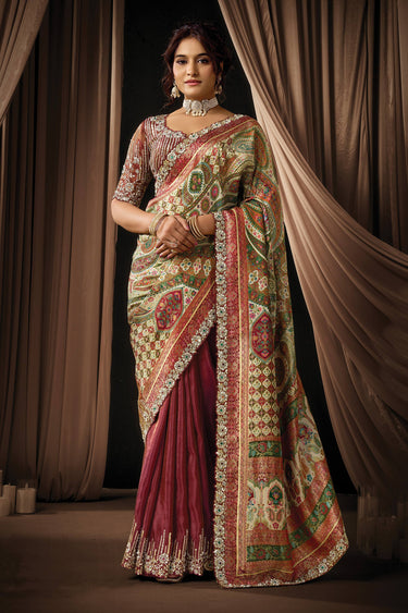 Jacquard Silk Fabric Maroon Saree For Function Wear